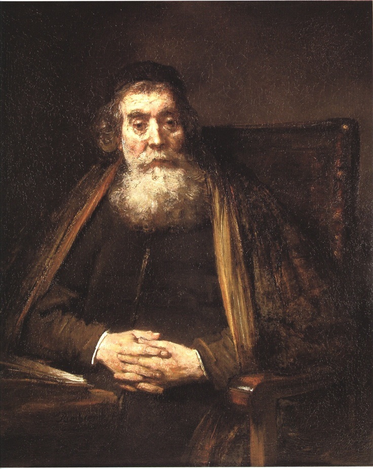 Denk niet dat de cover ons Saul Levi Morteira laat zien: voor de cover is gebruik gemaakt van Rembrandt van Rijn's Oude man in een leunstoel, 1665 [Uffizi Gallery, Florence].
