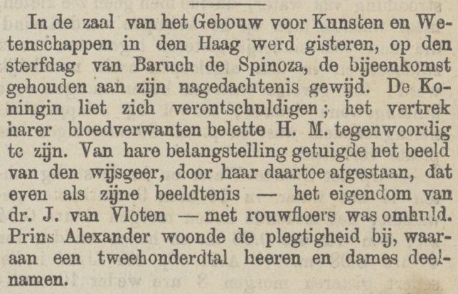 bezig gelden in te zamelen en via een prijsvraag kunstenaars een beeld van Spinoza