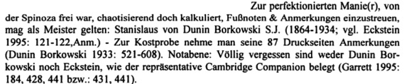 "Uiteindelijk omvatte zijn Spinoza-oeuvre 4 delen met ruim 2000 bladzijden en verwijzingen naar 15000 titels! De laatste twee van deze vier delen zijn na Dunin-Borkowski dood bezorgd door zijn vriend Carl Gebhardt." Daarop kwam als reactie van een zekere Patrick: "Wat ik niet snap...