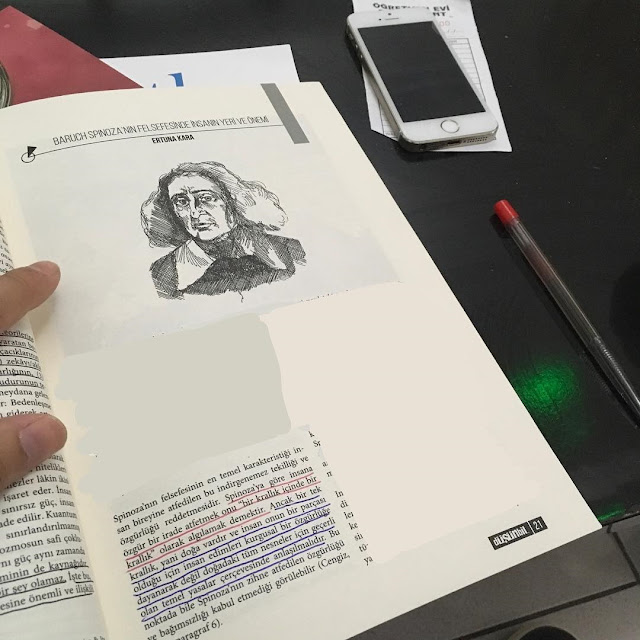 Op intabe.com verscheen enige uren geleden deze foto van de Spinoza-special van Düşünbil waarin ijverig is onderstreept...