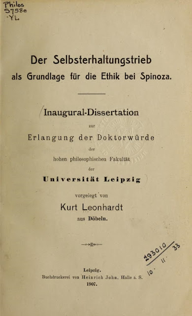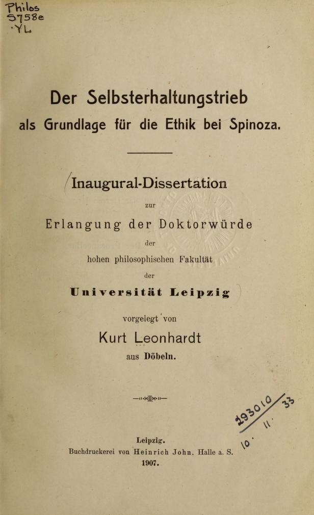Grundlage für die Ethik bei Spinoza. Inaugeral-Dissertation. Leipzig: