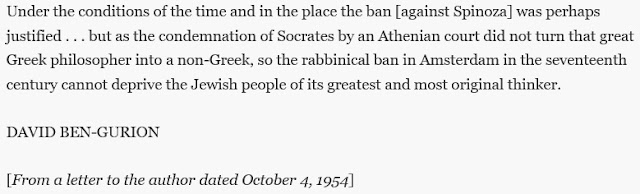 Uit een brief van David Ben Goerion, die zoals bekend groot fan was van Spinoza, kwam in het boek deze passage [gezien in questia]