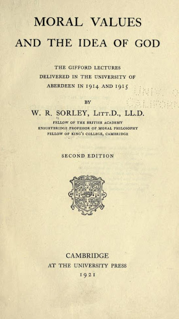 W.R. Sorley, Moral values and the idea of God: The Gifford lectures delivered in the University of Aberdeen in 1914 and 1915; editions 11918, 21921 – archive.org