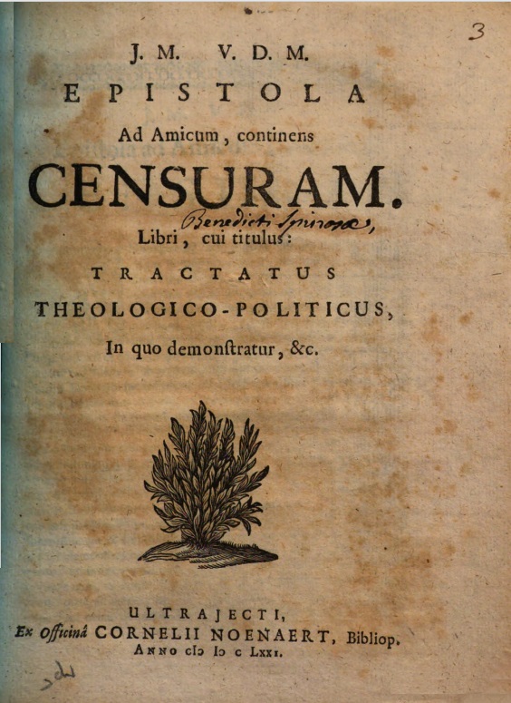 utterly mangled Spinoza's name rendering it "Xinospa." Mcichior's Epistola focuses especially on Spinoza's