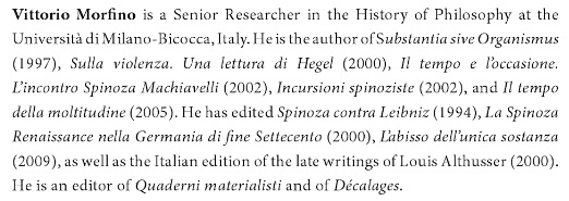 enige dagen houdt Vittorio Morfino mij flink bezig. Het begon met het boek dat