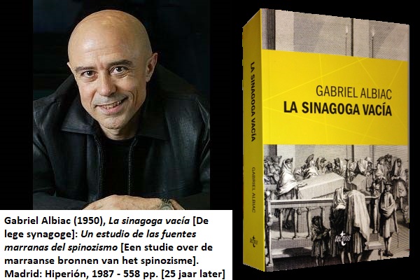 Dit boek is de Franse vertaling van een eerder ( 1987 ) in Spanje gepubliceerde en gelauwerde studie over de marraanse bronnen van Spinoza. Het bevat fascinerende delen over de marraanse achtergronden in Spinoza's denken, en over de discussies in de Amsterdamse joodse gemeenschap in de eerste helft van de 17de eeuw (met figuren als Pereyra, Orobio de Castro, Menasseh ben Israël, Uriel da Costa, Juan de Prado, enzovoort). Tegelijk treedt de auteur over deze problematiek in discussie met andere publicisten (zoais I. S. Revah, A. M. Vaz Diaz, J. -P. Osier, P. Vernière, enzovoort). Veel aandacht wordt besteed aan tragische figuur van Juan de Prado (ook Spinoza's filosofie wordt hier geïnterpreteerd als een radicaal anti-religieus en tragisch denken). De meer historische passages worden afgewisseld door of vermengd met nogal wilde speculatieve beschouwingen over Spinoza's denken, sterk geïnspireerd onder meer door Marx, Deleuze, Negri. Het boek wemelt van buitengewoon interessante uittreksels uit documenten en getuigenissen en van allerlei interessante citaten in verband met het onderwerp. De bibliografie bevat interessante afdelingen betreffende manuscripten en gedrukte bronnen in verband met de behandelde problematiek. H. De Dijn