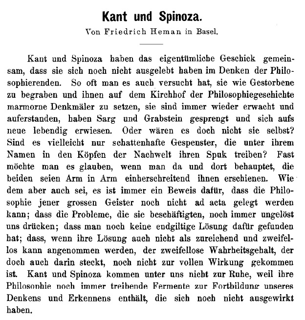 Heman, “Kant und Spinoza.” In: Kant-Studien