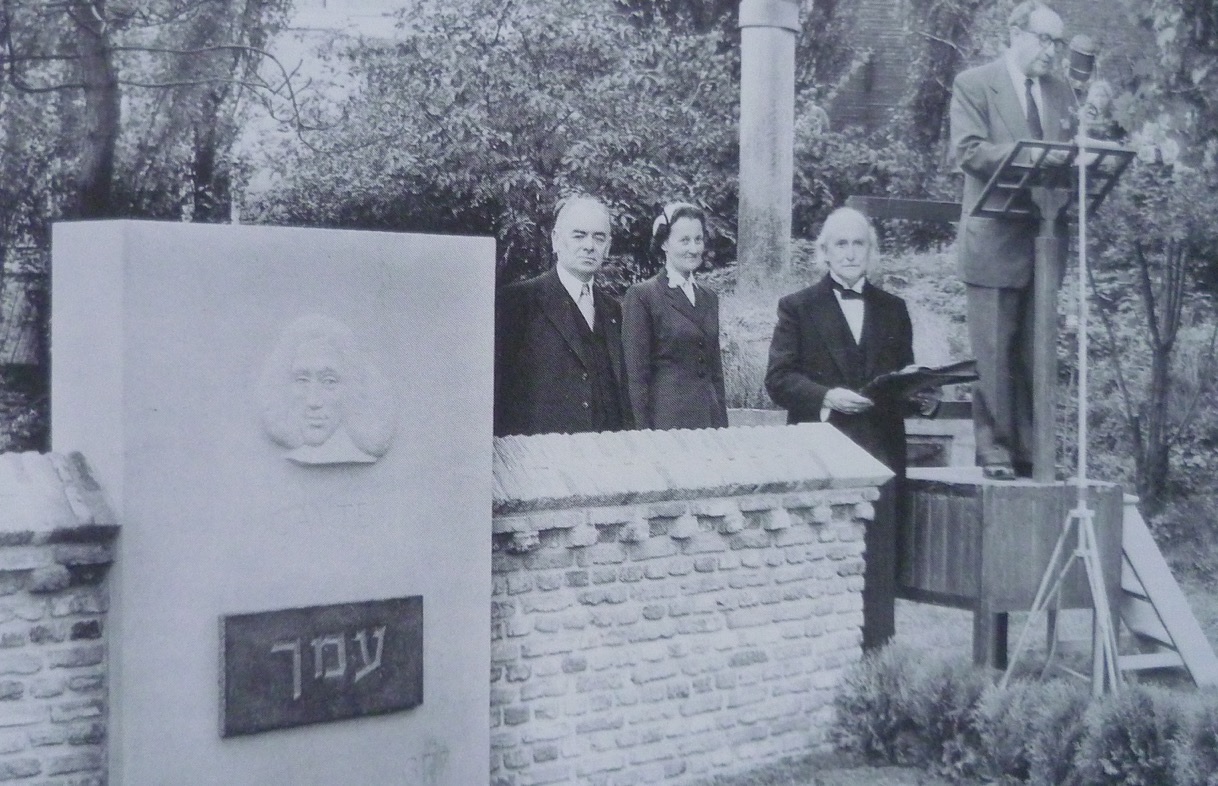 Foto van de onthulling van het ‘Amcha’-monument achter