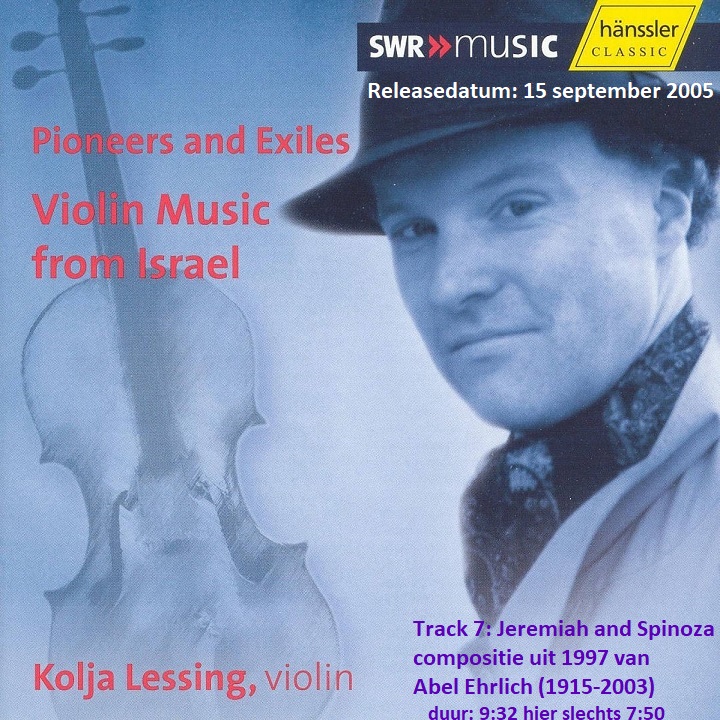 Rob van der Hoeden wees mij op het volgende: SWR Music geeft Kolja Lessing’s toelichting in het CD-boekje als PDF. Daaruit haal ik deze passage waarin méér over Abel Ehrlich’s Jeremia und Spinoza wordt gezegd. [Ook over Bashrav van Abel Ehrlich, maar daarvoor verwijs ik naar die PFD].