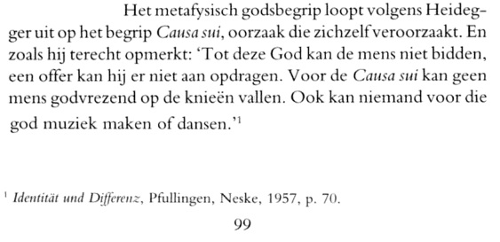 Wie zich meer wil bezighouden met Heideggers God- en causa sui-opvatting kan terecht bij John Williams, Martin Heidegger’s Philosophy of Religion. Wilfrid Laurier Univ. Press, 2010 - books.google