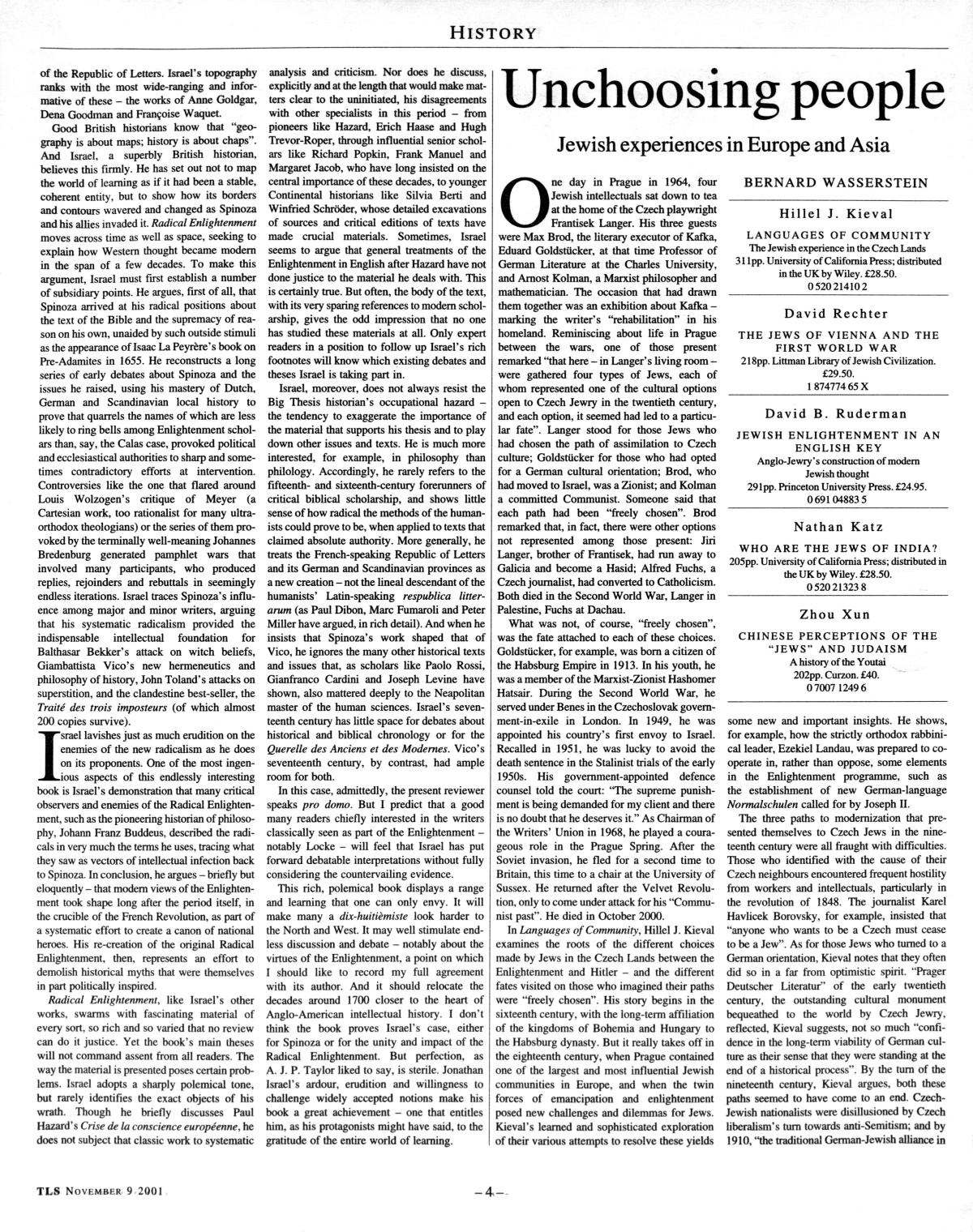 Ik haal hier ook Grafton's bespreking in The Times Literary Supplement van 9 november 2001 binnen van Jonathan Israel's Radical Enlightenment (ook al werd het geïllustreerd met die vreselijke onjuiste Spinoza-afbeelding)