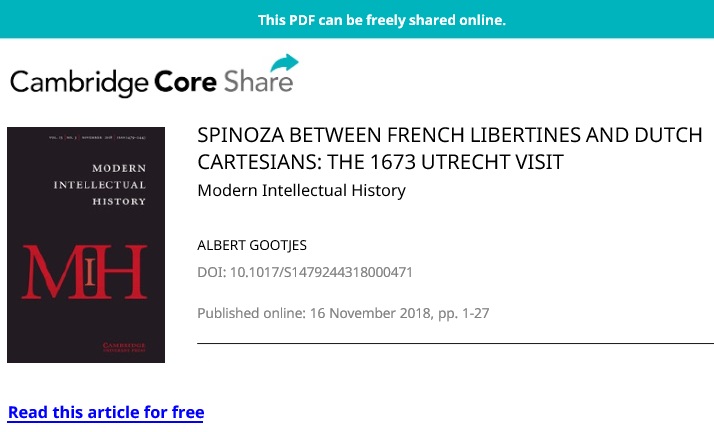 inmiddels verscheen zijn artikel "Spinoza Between French Libertines and Dutch Cartesians: