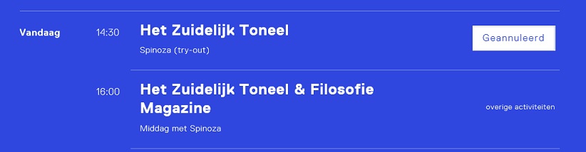 [t.w. Spinoza] organiseren Filosofie Magazine en Het Zuidelijk Toneel vanmiddag, dinsdagmiddag