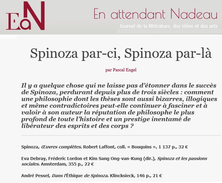 Intussen een bespreking van drie recente Spinoza-boeken: