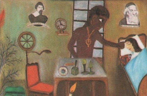 | Droomscene uit Perle Hessing, Scenes from Spinoza’s Life (1977) - zie onder het hele schilderij |