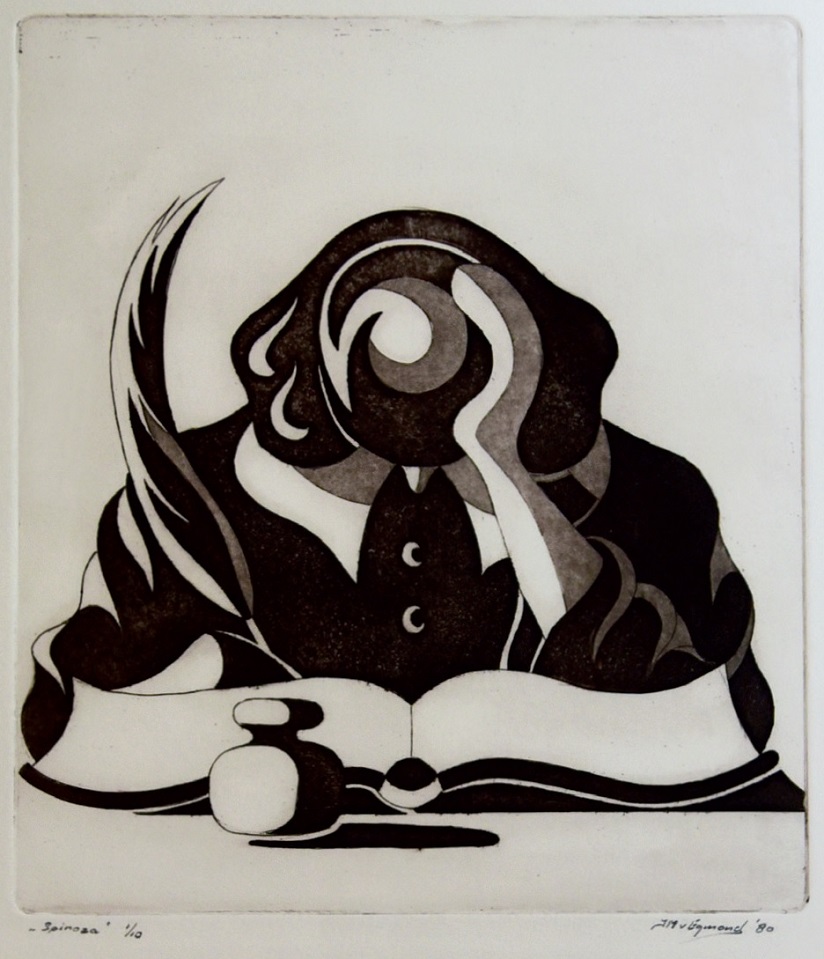 Zo hangt de ets van Joop van Egmond in het Spinozamuseum