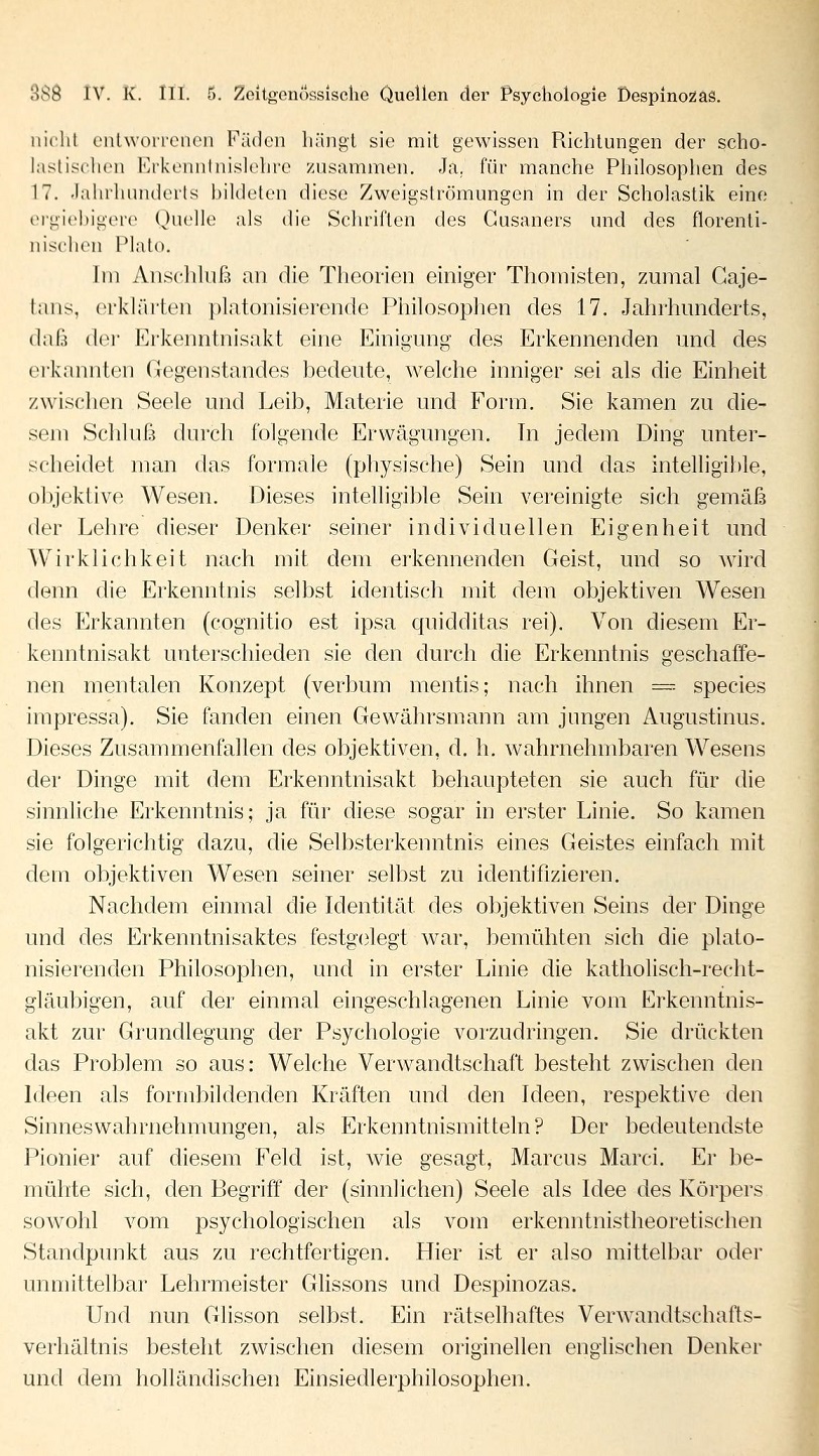 te vinden over Marci (wellicht gebruikten zij de Zweitauflage vom Der Junge De Spinoza (1933), innerhalb eines vierbändigen Werkes?), maar vinden we vanaf p. 383 §5. Zeitgenössische Quellen der Psychologie Despinozas”