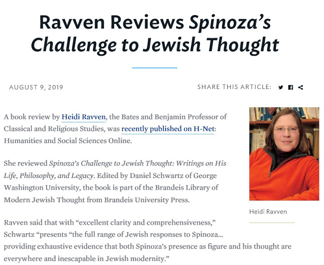 De Washington Spinoza Society (de kring rond Daniel Spiro, cf. ) begint z'n nieuwe seizoen op maandag 9 september 2019 met een lezing van Yitzhak Melamed over “Spinoza’s ‘Atheism’”. Hij zal "show that the only sense in which Spinoza can be genuinely considered an atheist is one that is not particularly informative." 'Atheism' dus tussen aanhalingstekens. [Cf.]