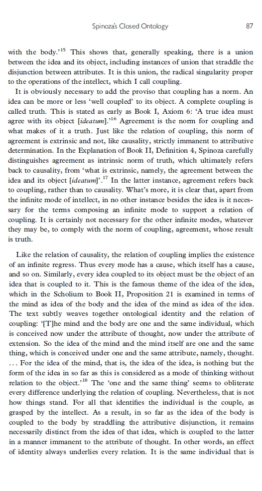 koppeling (idea en 't object ervan veroorzaken elkaar niet, maar zijn aan elkaar gekoppeld - p. 86, 87);