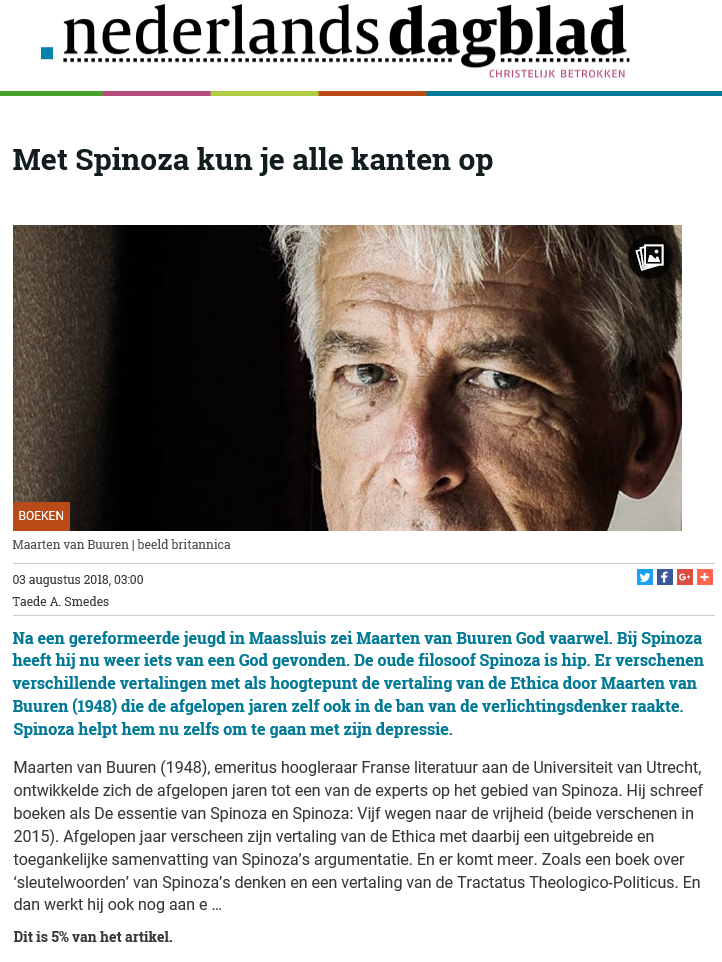 Taede A. Smedes met Maarten van Buuren had in het Nederlands Dagblad van 3 augustus