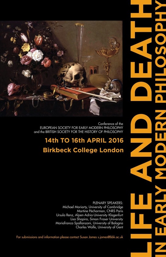 het Birkbeck College London én het Kings College London een conferentie over Life and Death in Early Modern Philosophy